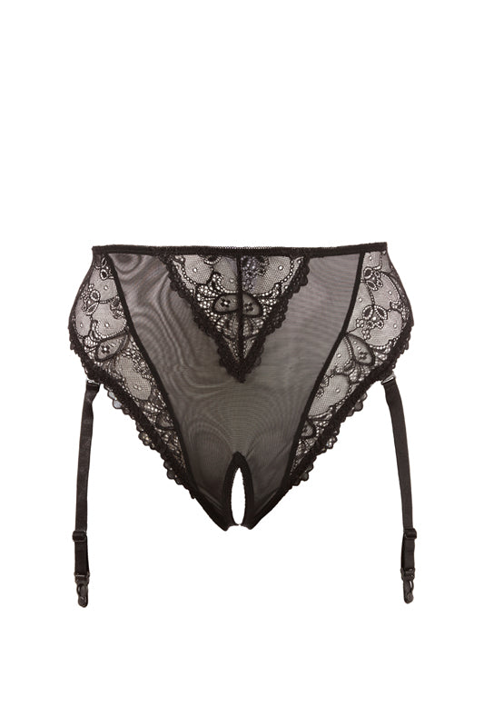 Deze zwarte jarretel slip mag niet ontbreken in jouw lingerie collectie! Creëer eenvoudig en snel een sexy jarretel look met deze zwarte jarretel slip uit de Cottelli Collection. Deze high waist slip is gemaakt van doorschijnend materiaal en is afgewerkt met kanten details. De afneembare jarretelbandjes zijn eenvoudig te bevestigen aan jouw favoriete kousen waardoor je zonder moeite een sexy jarretel look krijgt. Maak je set compleet met een sexy BH en jij bent helemaal klaar om te verleiden. Ook wanneer jouw partner zich niet langer kan beheersen kunnen jullie ongestoord doorgaan. De slip is namelijk voorzien van een open kruis!