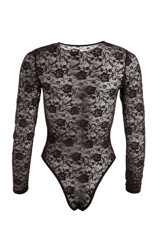 Ga voor een verleidelijke look met deze body met lange mouwen. Hij is gemaakt van kant en voorzien van inzetstukken van lakstof aan de zijkanten en aan de voorkant. Met drukknoopsluiting in het kruis.