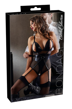 Deze zwarte bondage body uit de Cottelli Collection is perfect voor spannende spellen in de slaapkamer. De body is sexy, comfortabel om te dragen en laat jou en je partner op een subtiele wijze kennismaken met bondage. De doorschijnende body is voorzien wat wetlook stukken op de cups, het kruis en de taille. Deze bedekken de intieme zones maar maken het wel mogelijk ze bloot te geven tijdens spannende momenten. De cups en het kruis zijn namelijk voorzien van ritsjes waarmee je zelf kunt zorgen voor open cups en een open kruis. Aan de achterkant van de body zijn een paar wetlook sierboeien geplaatst.