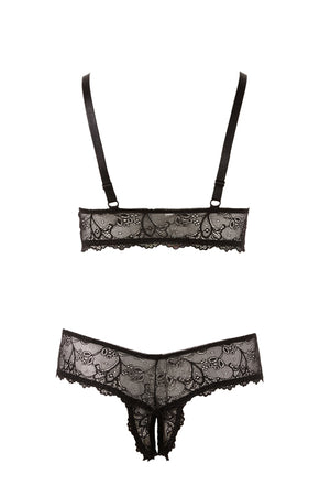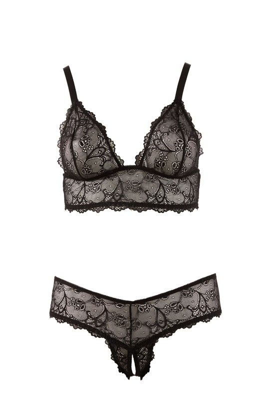 Voel je klaar om te verleiden in deze schitterende kanten BH set uit de Cottelli Collection. Dit zwart kanten lingerie setje is heerlijk om te dragen én geweldig om te zien. De kanten cups in combinatie met de kanten V-slip zorgen voor een look die niemand kan weerstaan. Voel je onweerstaanbaar en verleid je partner in de slaapkamer. Ook wanneer het echt spannend wordt kun je dit lingerie setje gewoon aanhouden. Door het open kruis in de slip kan jouw partner volledig zijn gang gaan!