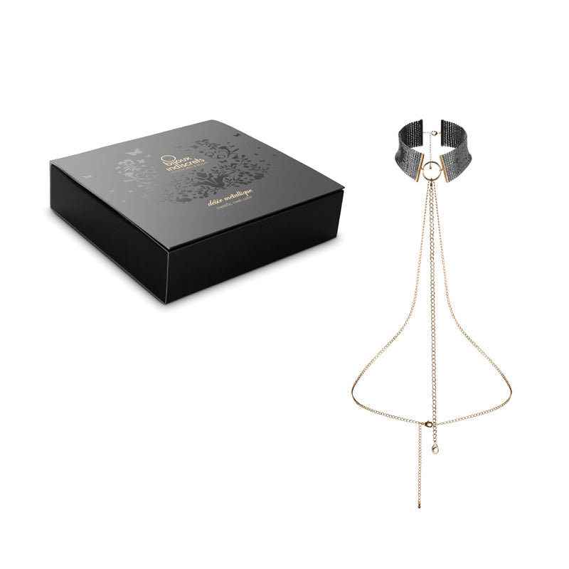 De Désir Metallique ketting laat stijl en bondage samen komen. De ketting ontworpen om jou te laten genieten van een stijlvolle look terwijl je de wereld van BDSM ontdekt. Draag hem als een luxe ketting tijdens gebruik hem als halsband wanneer jullie spel zich verplaatst naar de slaapkamer. De grote ring is perfect om touwen en boeien aan te bevestigen! Ben jij klaar voor meer?