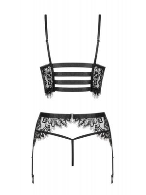 Met deze verleidelijke 3-delige Lashy jarretel set van Obsessive zorg je zeker voor een sensuele sfeer binnen in de slaapkamer. De BH top heeft een prachtige belijning die jouw vormen er super vrouwelijk uit laten zien. De ongevoerde cups zijn van gebloemd kant en hebben beugels. De jarretelgordel heeft verstelbare bandjes en een sluiting aan de achterkant. De bijpassende sexy string maakt deze look compleet. Het materiaal is elastisch voor een mooie pasvorm.
