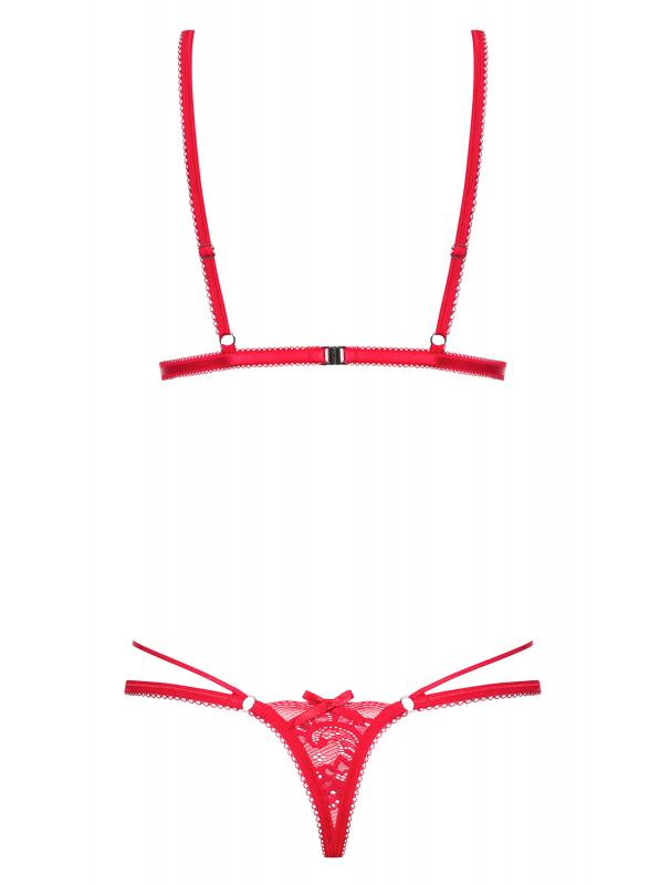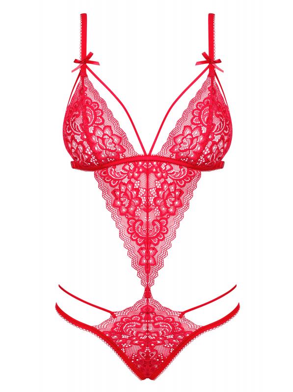 Deze luxe kanten body van Obsessive heeft alles in huis voor een sensuele avond in de slaapkamer! Deze uitdagende rode body is aan de zijkanten uitgesneden en heeft verstelbare bandjes. De body heeft een sluiting aan de achterkant en de cups zijn zonder voering of beugels. Het materiaal is elastisch voor een mooie pasvorm.