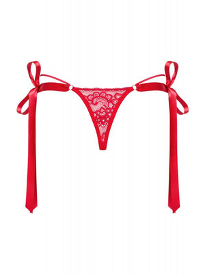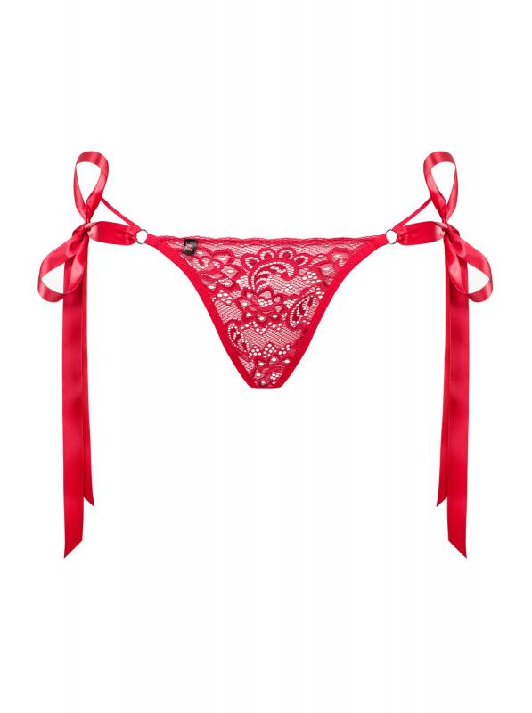 Deze sexy string heeft kanten details en strikjes aan beide zijdes voor een spannende look. Het materiaal is elastisch voor een perfecte pasvorm.