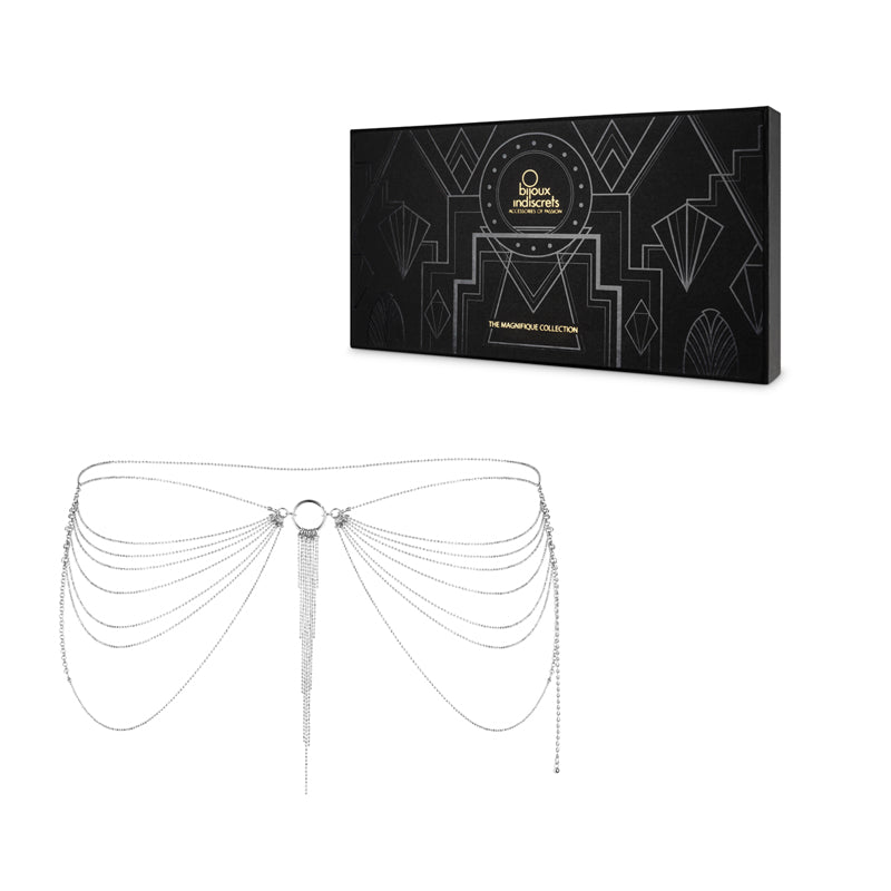 De Magnifique ketting accentueert je heupen voor een schitterende look. Deze bodyketting bestaat uit smalle rijen met een bolvormige structuur. Uiteraard is het sieraad verstelbaar en gemaakt van sterk, duurzaam materiaal. Draag het over kleding of in combinatie met sexy lingerie en maak je outfit verleidelijker dan ooit.