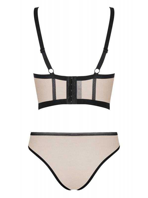 In dit sexy Nudelia BH setje val je zeker op! Deze set heeft een classy uitstraling en een sportieve belijning. Het materiaal is licht doorschijnend met een subtiel glittertje. De BH top heeft verstelbare bandjes. De bijpassende slip is hoog opgesneden en maakt de look compleet. De stof is elastisch voor een hoog draagcomfort.