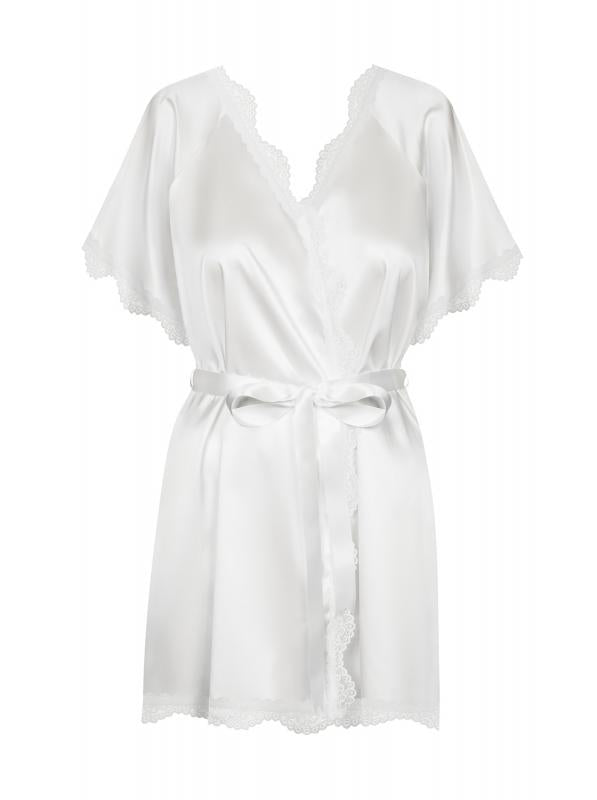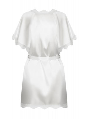 Deze romantische kimono in satijnlook van Obsessive draagt heerlijk comfortabel en heeft mooie kanten details. De kimono heeft wijdvallende korte mouwtjes en sluit met een strikceintuur.