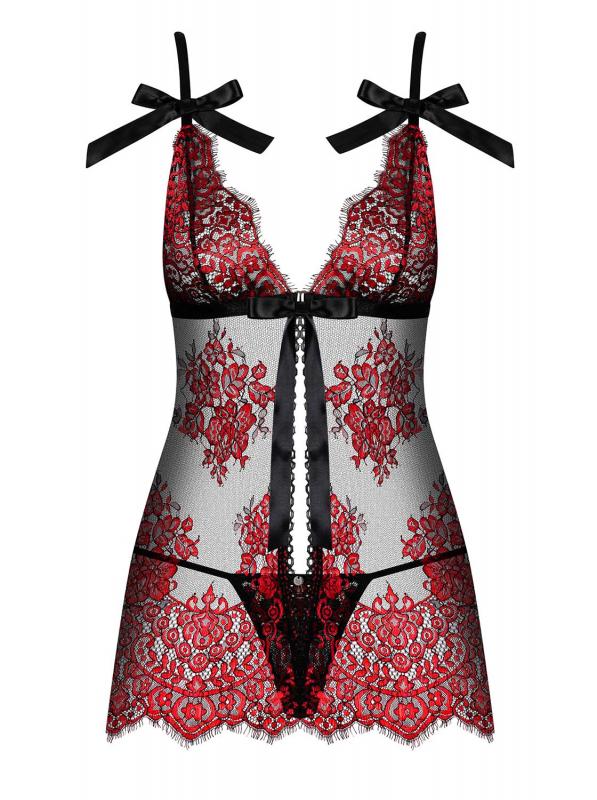 Redessia Kanten Babydoll Met String - Rood/Zwart