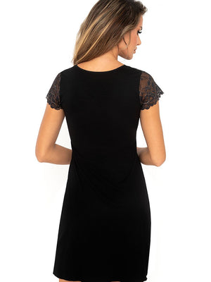 De VANESSA chemise is geraffineerd en elegant in elk detail. De basis van de creatie is gladde, glanzende viscose, waaruit de beha en het hele broekje zijn opgebouwd. De top is van semi-transparante crèmekleurige kant. Het omsluit de schouders, de halslijn en loopt helemaal door tot aan de snit onder de buste, die het silhouet perfect vormt. Het indrukwekkende kant glinstert prachtig en zorgt voor een uiterst elegante compositie. Gemaakt in Polen.