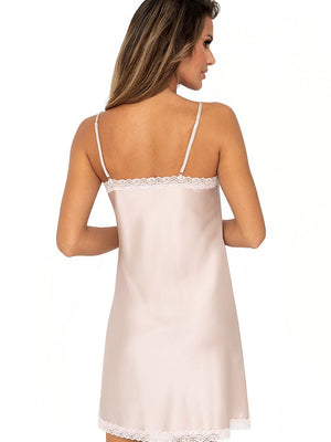 Luchtig als een mist, glinstert de TIFFANI chemise bij elke beweging. Hangend aan dunne, verstelbare bandjes vloeit het satijn zachtjes rond het silhouet. De halslijn is delicaat, afgewerkt met subtiel kant. Het A-vormige broekje wordt gesloten met een strook opengewerkte decoratie. Gemaakt in Polen.