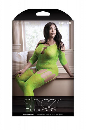 Opvallen doe je zeker in deze neon groen sexy catsuit met aangehechte jarretels en open kruisje! Deze catsuit laat je vormen nog sensueler uitkomen, rekt goed mee en heeft een fijne pasvorm.