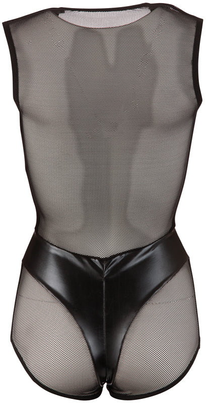 Verras je partner of verwen jezelf met deze prachtige zwarte body. Hij is gemaakt van een combinatie van wetlook materiaal en netstof, wat het geheel een sensueel uiterlijk geeft. Hij heeft een opening aan de onderkant en heeft een zeer laag uitgesneden decolleté. Je partner zal zeker niet van je af kunnen blijven als je deze body draagt tijdens een wilde nacht.