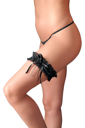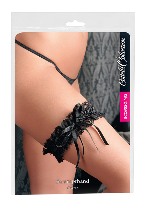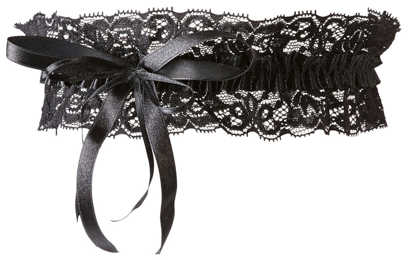 Deze zwarte kousenband van kant is heeft een romantische look. De fijne pasvorm zorgt ervoor dat de kousenband mooi aansluit op je benen. De kousenband is afgewerkt met een klein satijnen strikje.